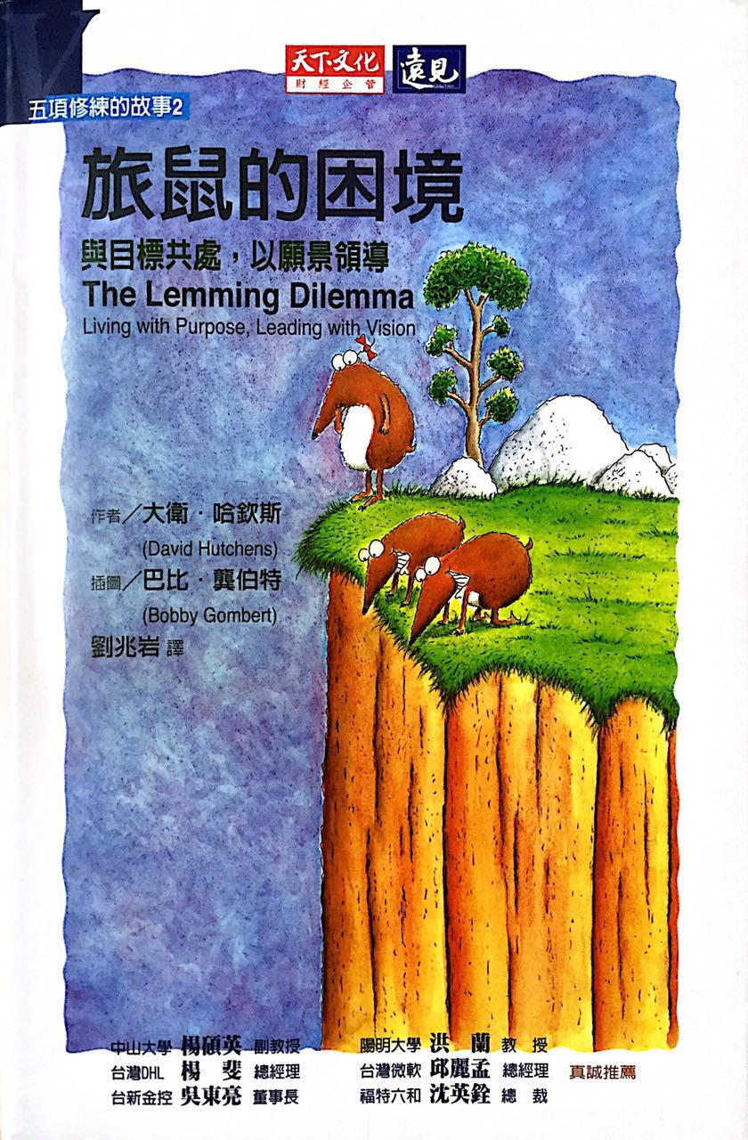 《旅鼠的困境》一書介紹了組織學(xué)習(xí)中自我超越的關(guān)鍵修煉——自我察覺的演進(jìn)過程,可以讓我們?yōu)閭€(gè)人或組織創(chuàng)造出新的可能性。在這個(gè)引人入勝的故事中,旅鼠愛咪察覺自己的使命及愿景,并違抗旅鼠們長久以來集體跳崖的沖動(dòng)。但是愛咪不只是抗拒傳統(tǒng),透過她令人驚訝的自我選擇,她激發(fā)其它旅鼠對本身使命的意識(shí),并追求他們個(gè)人和集體最深層的目標(biāo)和愿景。