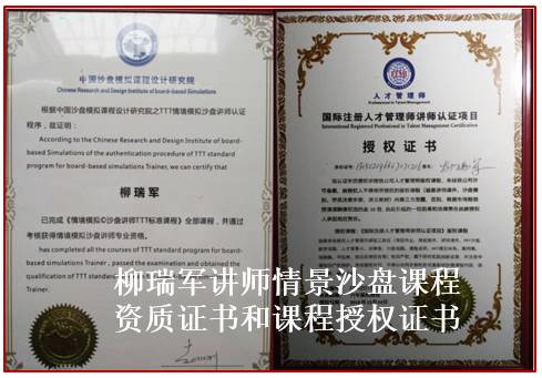 六、講師沙盤課程資質(zhì):柳瑞軍講師為TTT情景模擬?沙盤講師、ITMI國際注冊(cè)人才管理師、高級(jí)人才管理沙盤講師。擅長(zhǎng)沙盤課程:《創(chuàng)新思維沙盤模擬演練》、《領(lǐng)導(dǎo)力創(chuàng)新沙盤模擬演練》、《人才管理沙盤模擬演練》等。