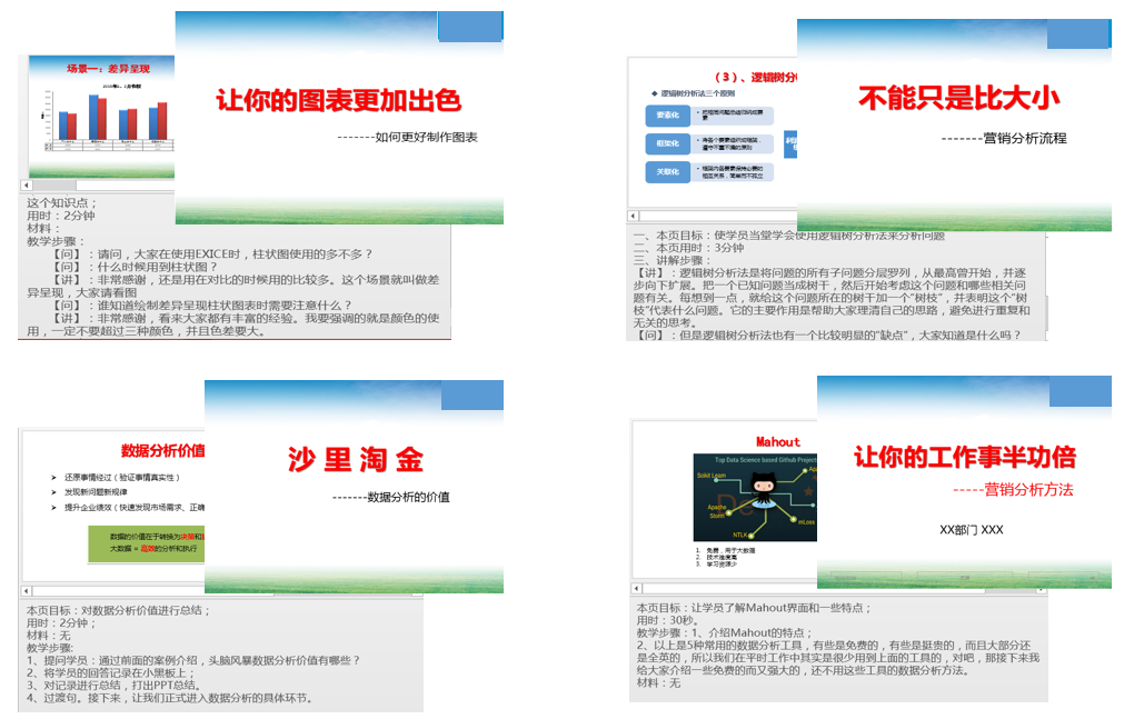 第四,就是課程包制作了,包括PPT、掛圖、插頁、道具設計制作、講師講義,學員講義(如果有必要)等。