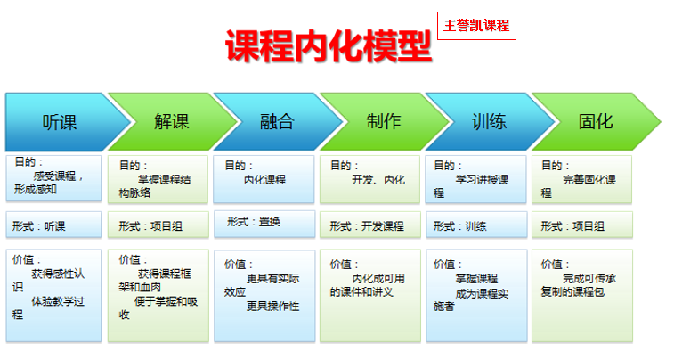 王譽凱研究的【引進吸收轉化】模型,可以幫助企業選擇合適的課程,轉化成企業內訓師可以使用的幾門小課程,對內訓師和企業的實施的要求都減輕了,是現今企業培訓體系建設的一個有益的補充。